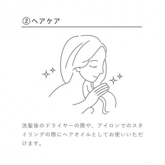 あらゆる肌質、髪質に対応。肌(全身)の保湿に、クレンジングオイルとして、ヘアスタイリングにおすすめ。スパオイルにもどうぞ。