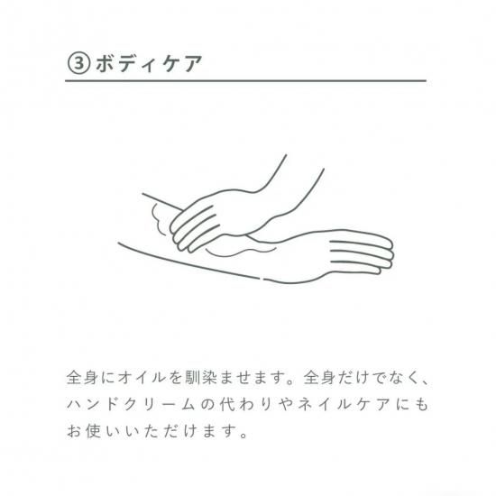 手でよく馴染ませてから、お肌や髪に丁寧に伸ばしてください。